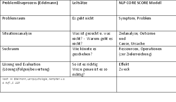 Der NLP "S CORE" Navigator beruht auf seit Jahrzehnten bekannten Phasenmodellen der Problemlösung. Beispielsweise können Problemlösungsprozesse in vier Phasen eingeteilt werden: